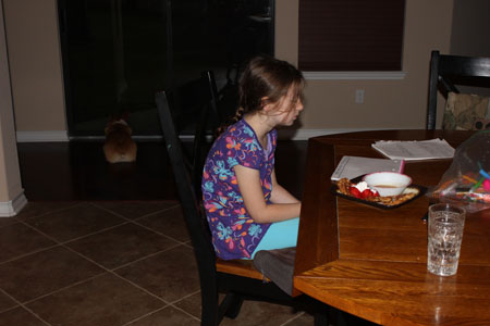 Fuzz only ate part of hers, but she's never enthusiastic about weekday breakfasts.