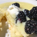 In a large bowl, using the electric mixer at medium, beat the egg yolks and remaining ¼ cup of sugar until blended. Add the lemon zest, lemon juice, milk, flour and melted butter. Beat scraping sides of bowl with a rubber spatula.